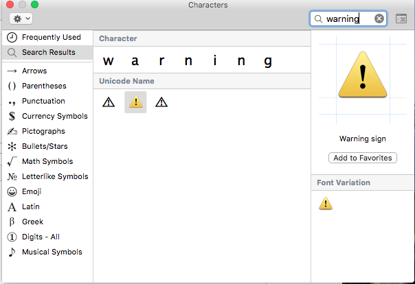 Control command spacebar will open this character viewer to insert Emojis ⚠️ , math¹⁵ symbols, etc.