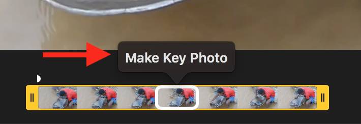 - In the film strip below the photo skim to the frame you want to see as the key frame and click Make Key Photo.