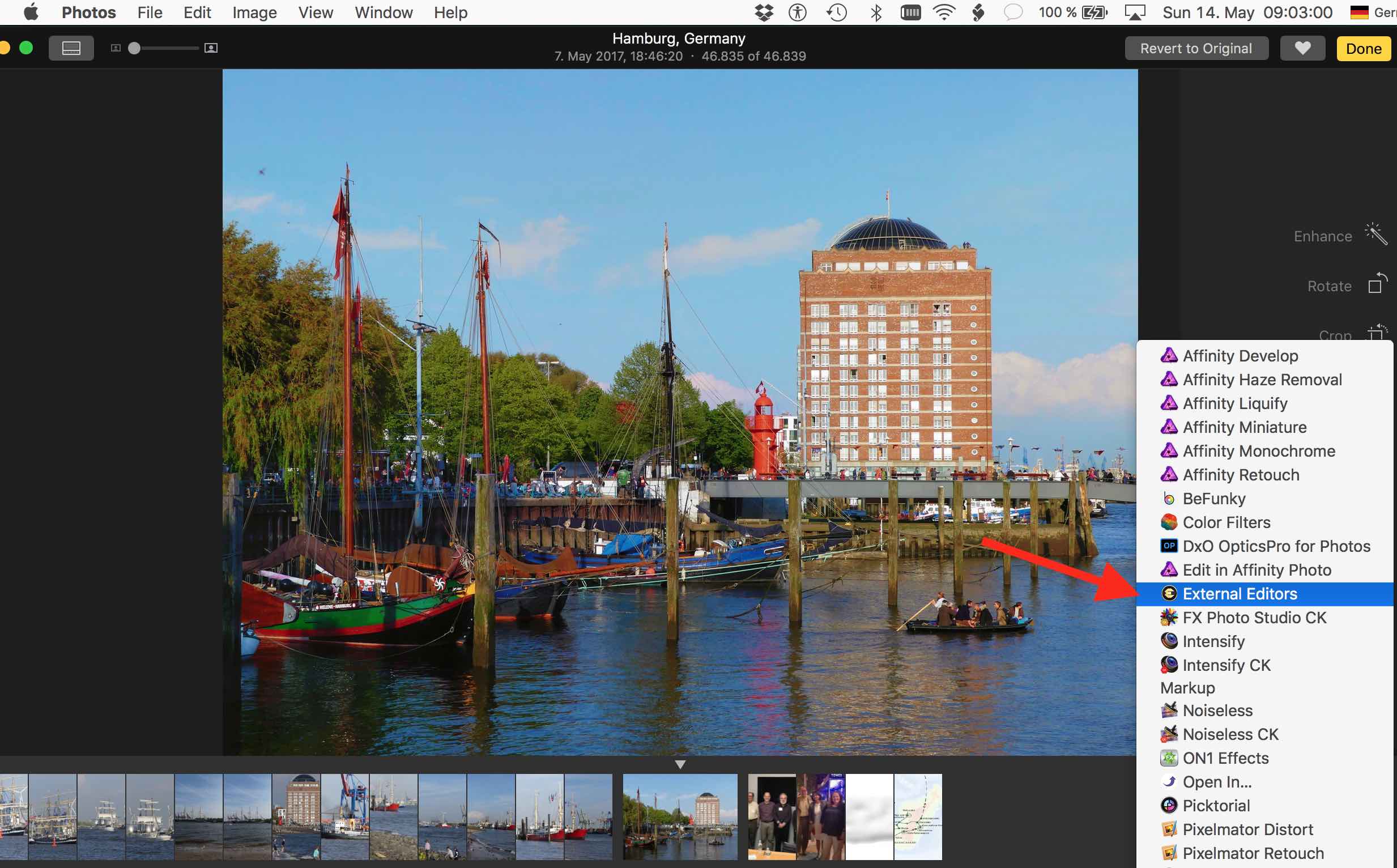 After you restart the Mac, the External Editor Extension will be able to see them and show them in Photos.