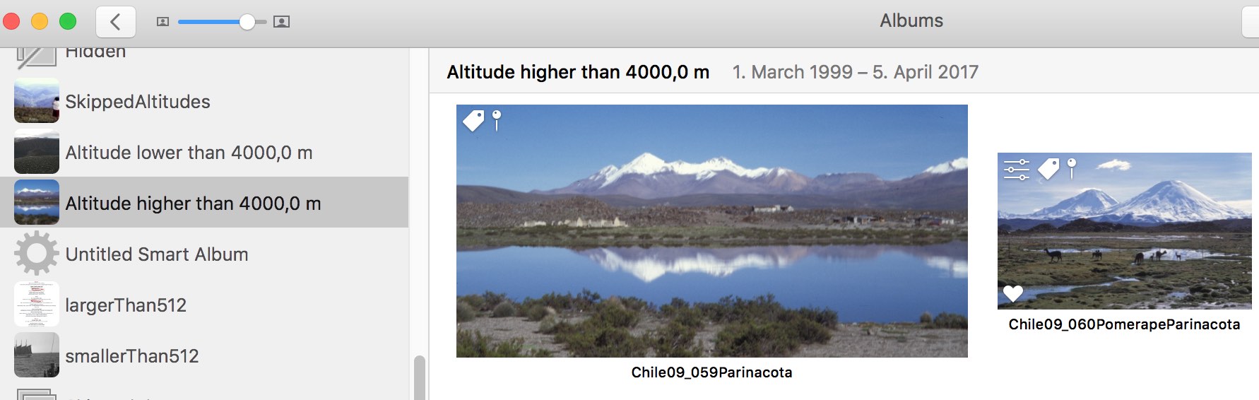 - HighAltitudeAlbum: an album with photos taken at a higher altitude than the threshold