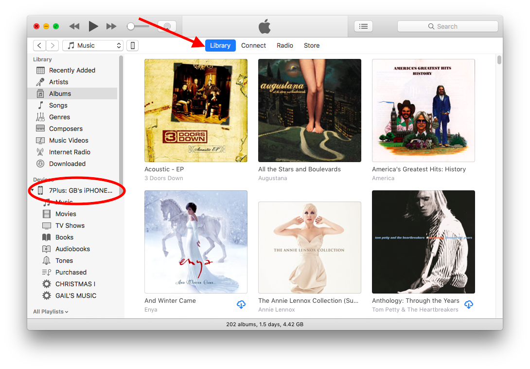 3. Click on Library view so that the sidebar can show your device: