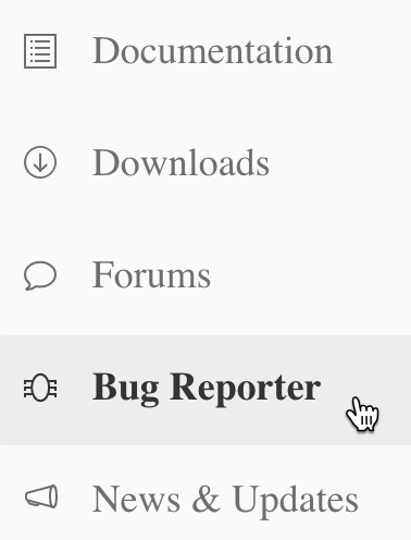 After logging into your account, select Bug Report in the sidebar.
