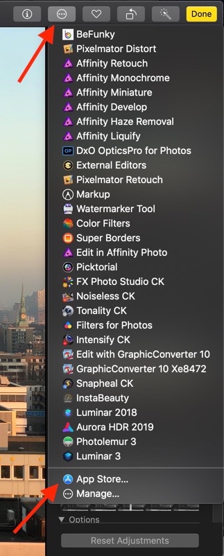 - Photos editing Extensions: These extensions, provided by third party applications, let you call third party editors and save the results back to Photos, see: Photo Editing Extensions for Photos for Mac
