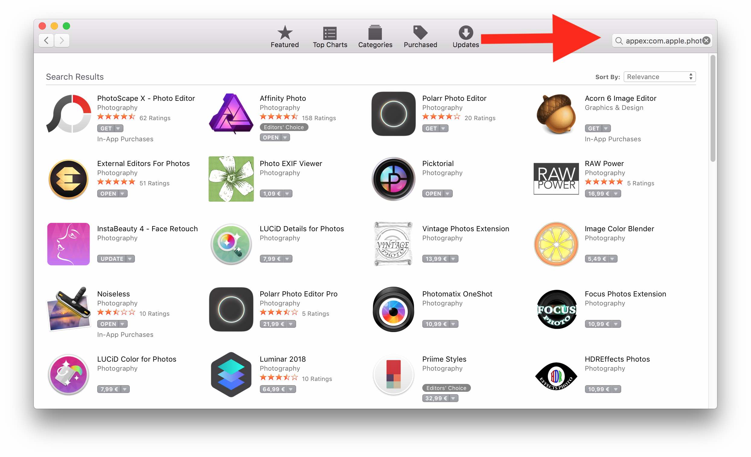 You can also enter directly these search strings into the search field of the Mac App Store: