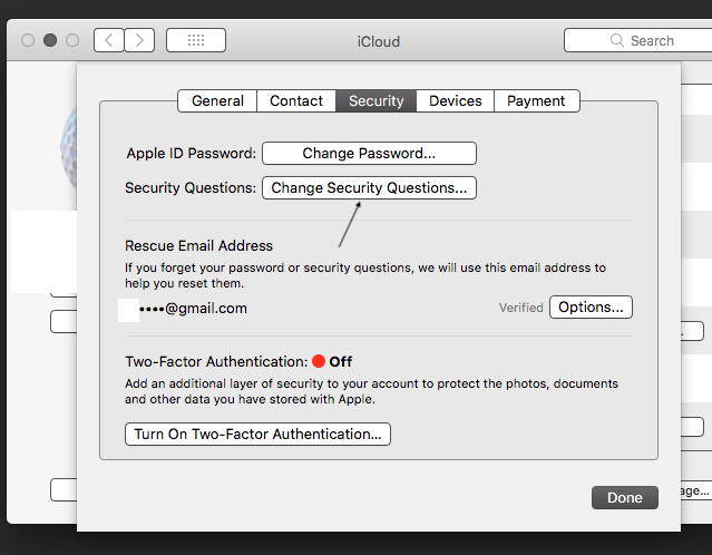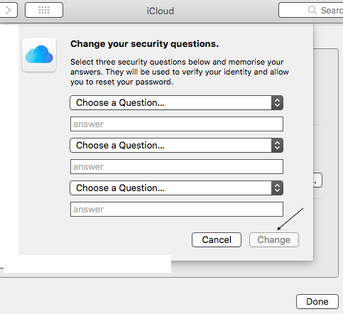 Change security questions and answers , password in a Mac for existing Apple ID by entering in system preferences and clicking on iCloud > account details , again click on security .
