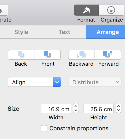 Then Format Panel > Arrange > Size (and make the size just a little bit less than the print area, perhaps the width of a bee's knees).