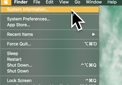 - To launch the System Information, hold down the options key ⌥ while clicking the -menu in the upper left corner of the display.