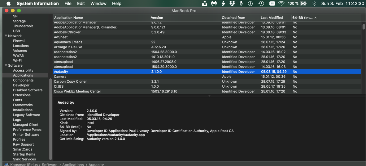- Click the 64-bit column to sort the applications by 64 Bit (Intel) or not.