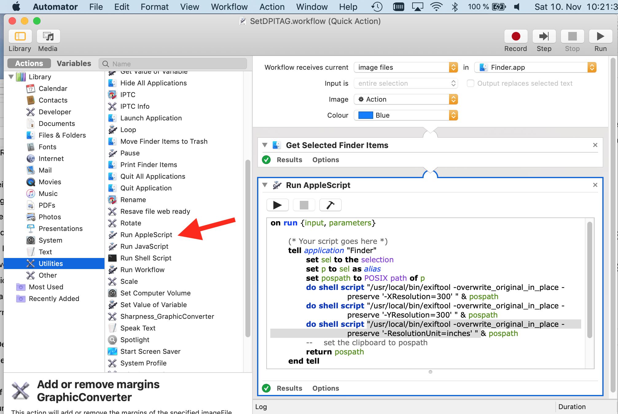 do shell script "/usr/local/bin/exiftool -overwrite_original_in_place -preserve '-XResolution=300' " & pospath