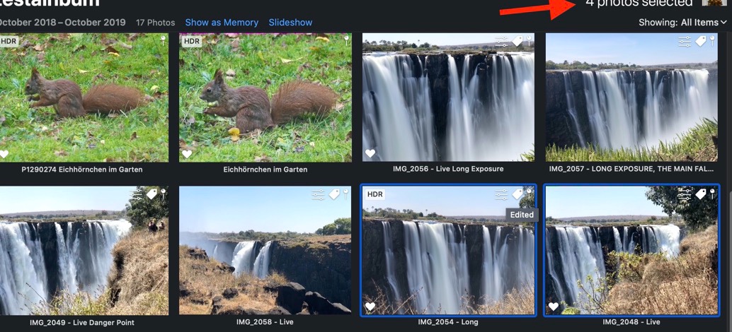 For example: In the album are two photos selected, but the status message is showing four selected photos: