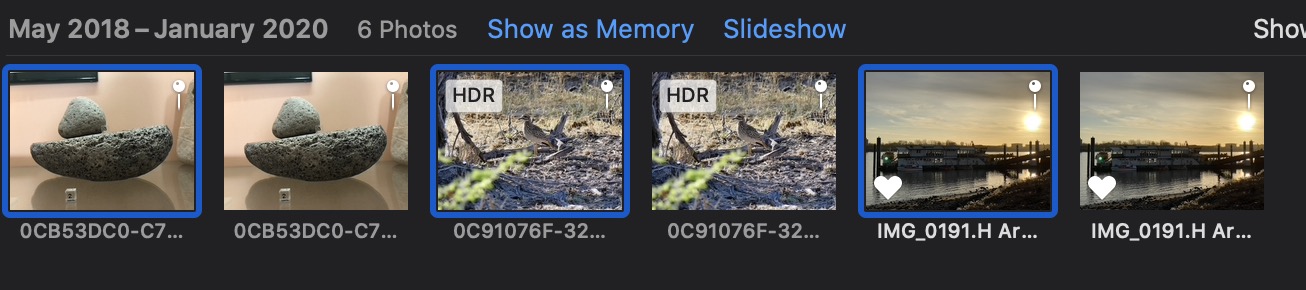 - Duplicate the selected photos with ⌘D. The photos will stay selected. You will now be seeing the selected photos with the unselected copies side-by-side in the album.