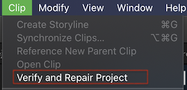 If you hold down the Option key, the Clip menu will show an extra item: "Verify and Repair Project".