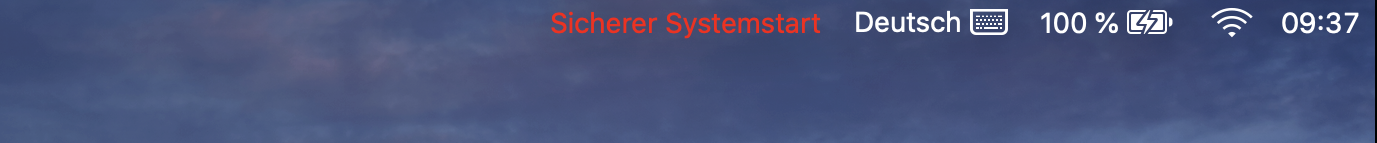 If you're not sure that your Mac is started in safe mode, you can use System Information to check. The Software section of System Information lists Boot Mode as "Safe" instead of "Normal" when you're started in safe mode. (https://support.apple.com/en-us/HT201262)
