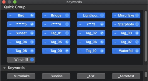 The quick group will also make it possible to assign the rating with one key click, if the Keyword Manager is open.