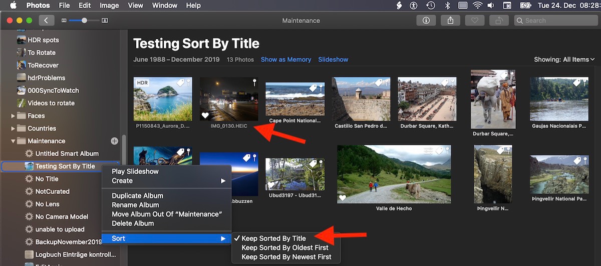 Sorting Albums by Title in Photos - Changes in Photos 5.0 on Catalina