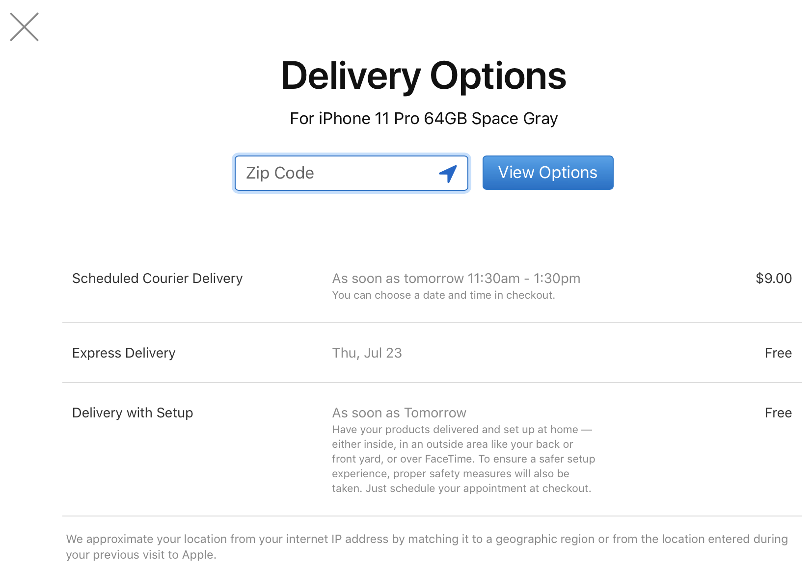In some areas, Apple is partnering with a company called Enjoy to offer delivery with setup help. Someone will deliver your purchase to your door, and will spend time helping you set it up. If you do not see the "Delivery with Setup" option shown below at checkout when you click on "Delivery options," then the service is not available in your area.