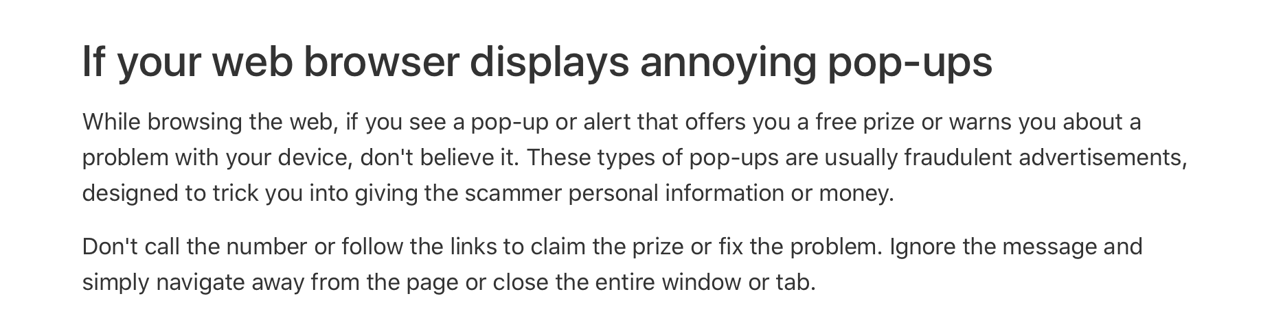 I got a popup that says “Your system is infected with (3) Viruses … - Apple Community
