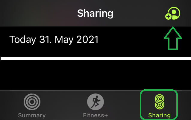 In the Fitness app, under Sharing, tap here to add a new fitness friend: