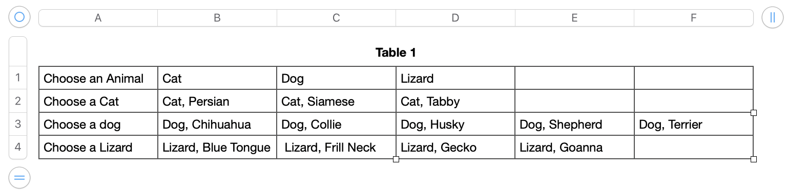 Creating "nested" or "cascading" Pop-Up Menus in Numbers