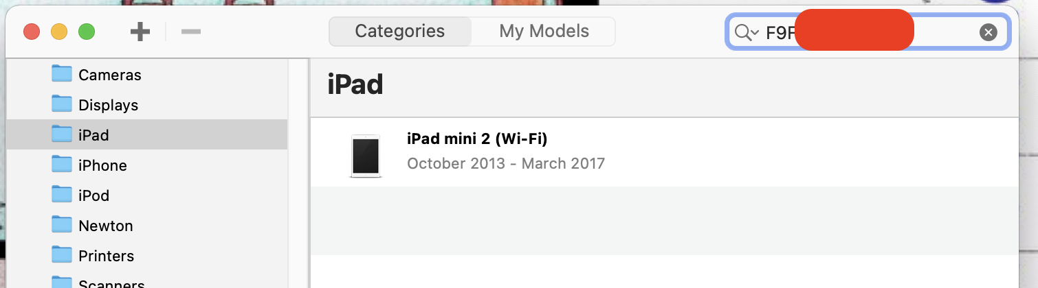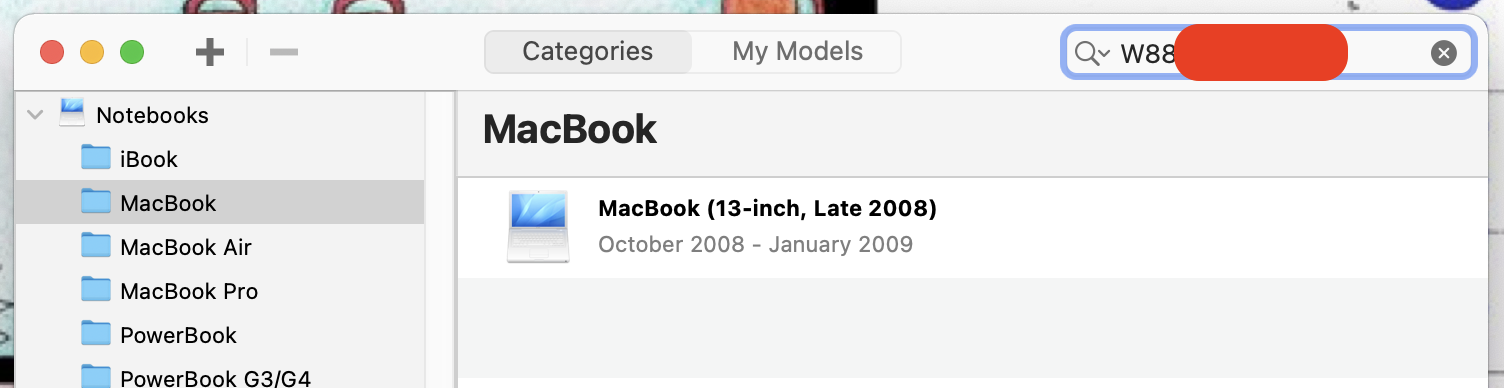 Once you have done that, it's really easy. Once you have Mactracker all you need to do is open the App. From there, you can choose a category in the left sidebar. Then enter the device's serial number in the search field. Once it's found, just double click the model in the right panel to find the specs.