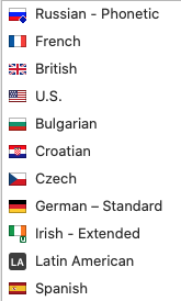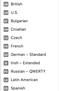 With version 12.4 of MacOS Monterey, Apple has replaced the multicolored country flag icons used to identify many of its different language input sources/keyboard layouts with monochrome square icons containing letters that indicate the language. Some examples of the new and old are shown below.