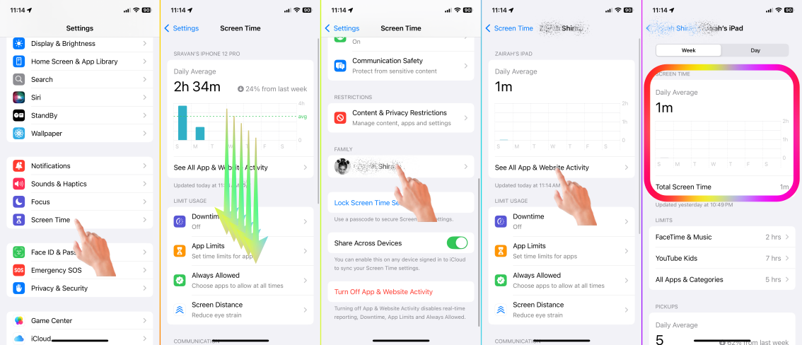 - Go to Settings > [your name] > Family Sharing > Screen Time.