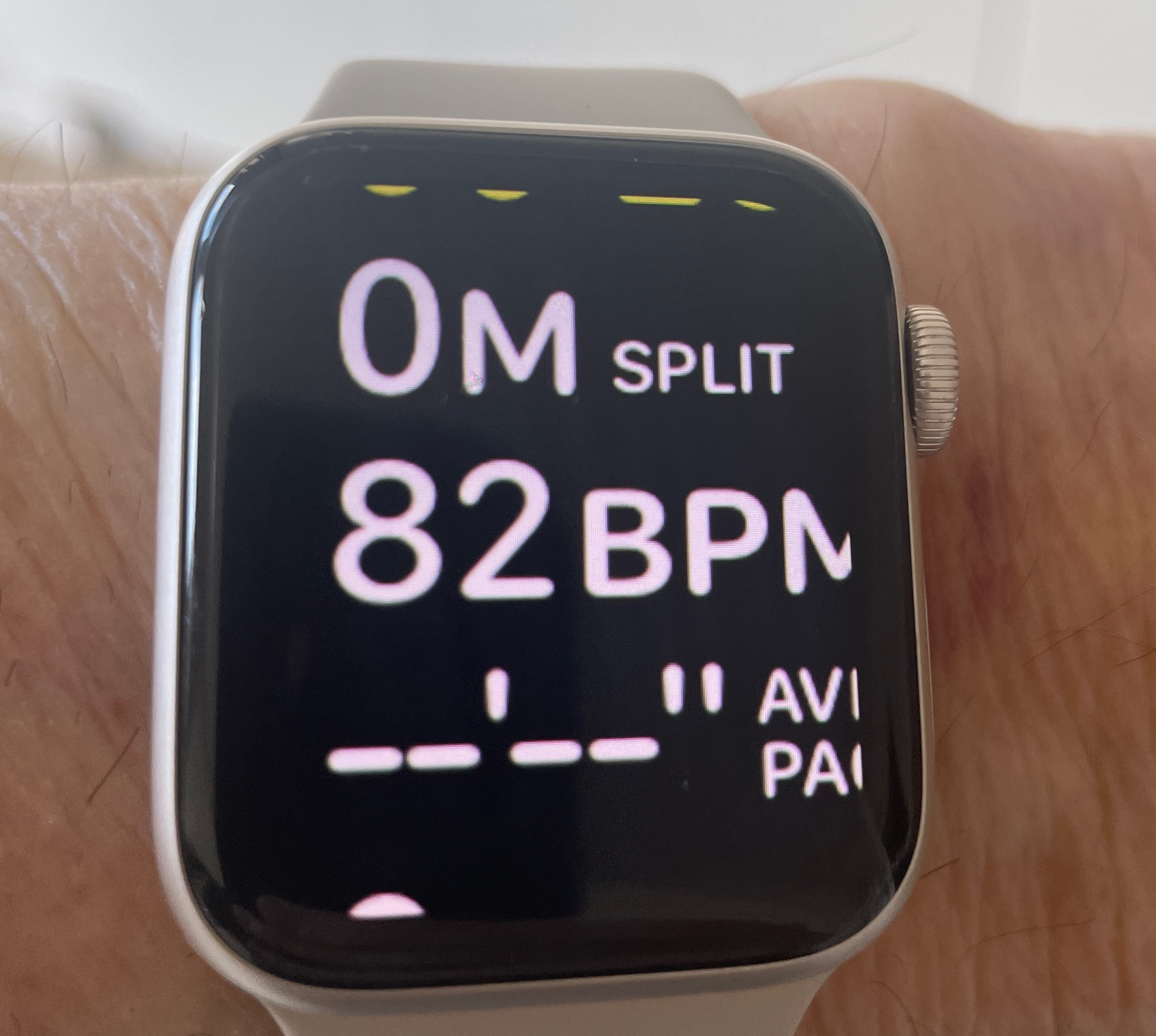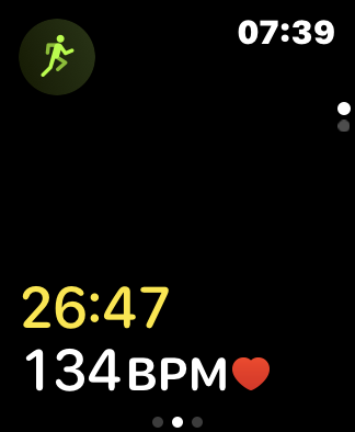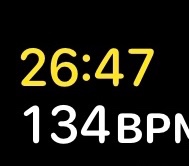 Advanced users can modify the workout to only show an important metric (for me at over 70 it would be heart rate BPM). The yellow elapsed time cannot be removed.