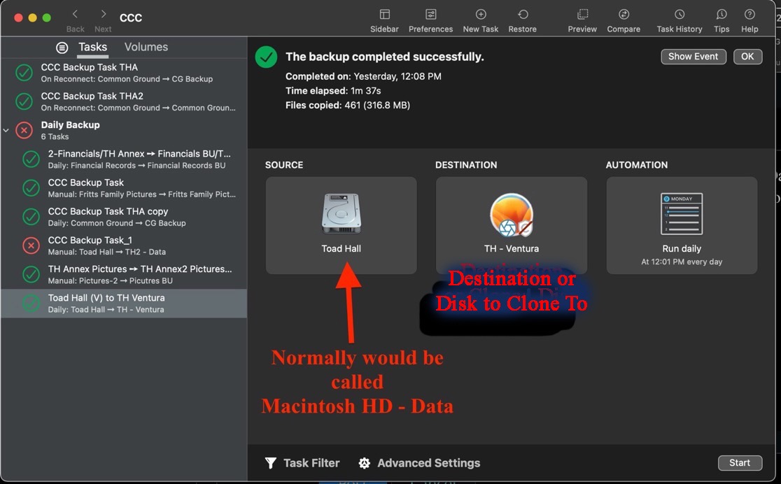 Instructions for using Carbon Copy Cloner to create a bootable external SSD of an Intel Mac's inside boot drive.