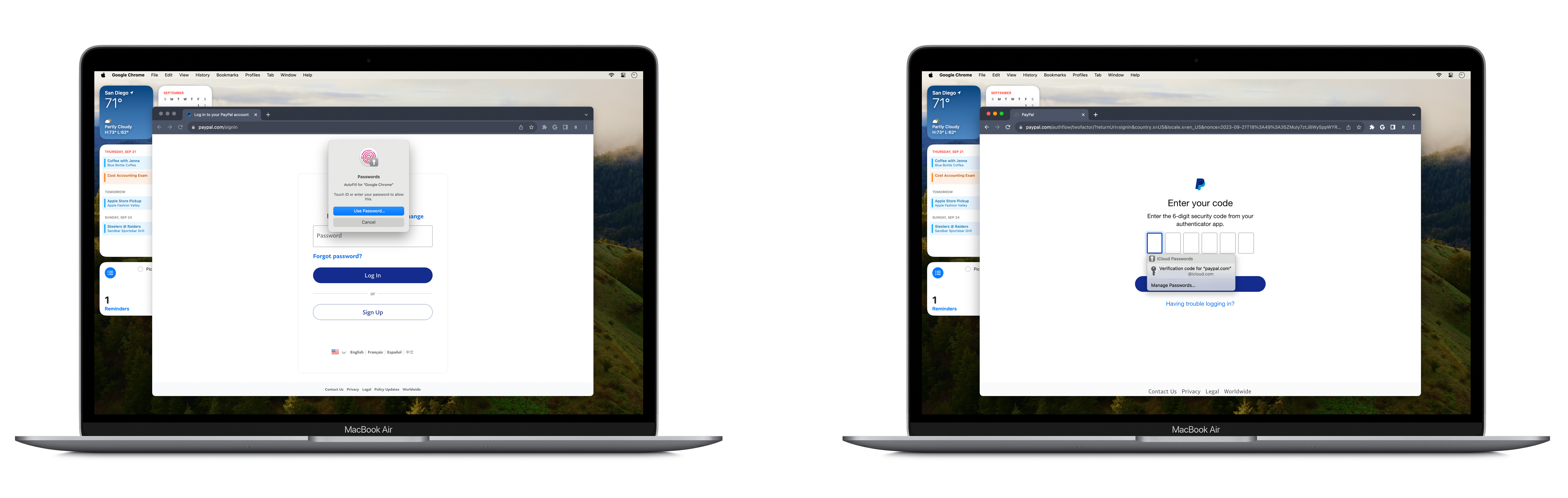 Once verified, iCloud Passwords will offer to auto-fill usernames/email addresses, passwords, and even stored multi-factor authentication codes. To complete the auto-fill, you'll need to authenticate through macOS through Touch ID, your passwords, or a paired Apple Watch.