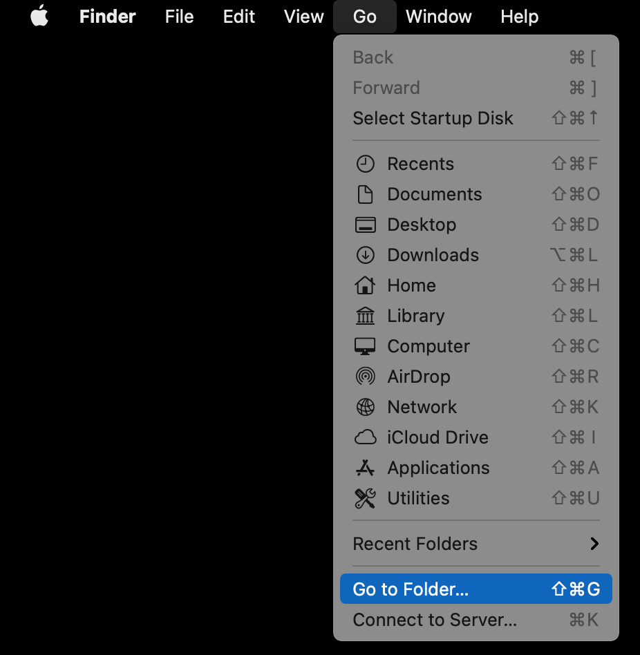 Notice its pathname is different than the last one. The Finder's Go menu > Go to Folder... field should look like this: