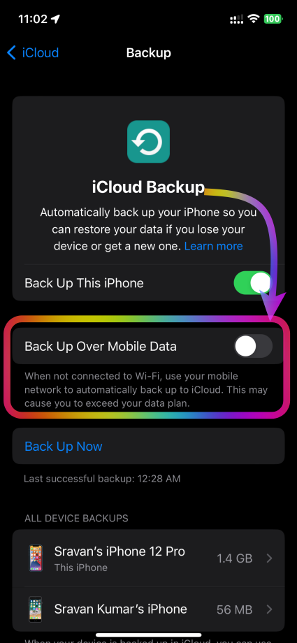 - Tap Back Up Now. Stay connected to your Wi-Fi network until the process completes. See the Pic below