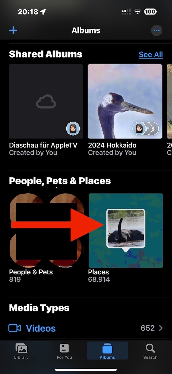 When we look at the list of the albums on our iPhone, sometimes the key photo used as the thumbnail is the most annoying photo that we do not want to have to look at, whenever we are browsing the albums. For a standard album the first photo in the album will be used as the key photo, so it is easy to change the key photo, we just have to drag a photo we like more to the the beginning of the album. That is more difficult for the albums that are created for us automatically by Photos.