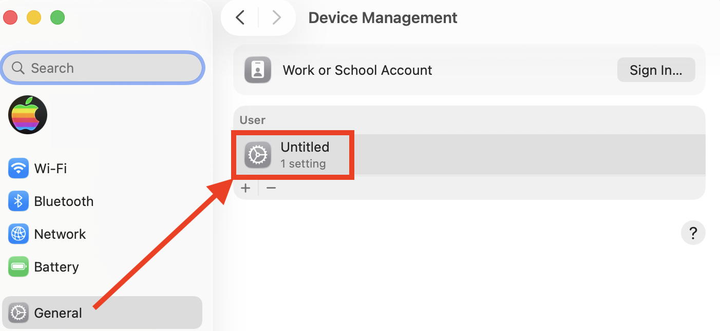 Performing this in macOS 14 Sonoma: The method is a bit different for macOS 14 Sonoma. You need to go to Privacy & Security > Profiles to add the profile. This can be seen below in II. Install the New Profile: Use my other User Tip for that: How to Use a Profile to Disable the iSight Camera in macOS 14 Sonoma - Apple Community