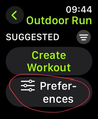 Then using the Crown scroll down to the end and tap on preferences (OS10, 11)