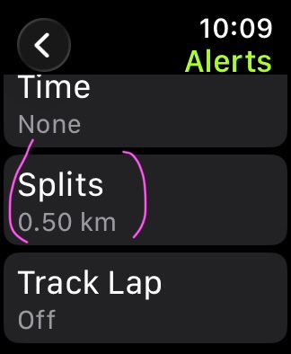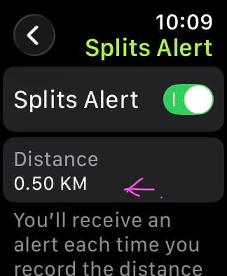 Turn on Split Alerts then tap on Distance