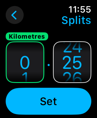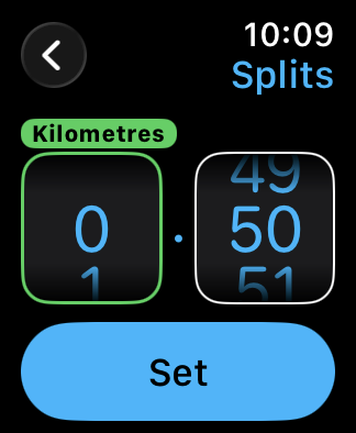 Then select the distance you want the split to be and tap SET