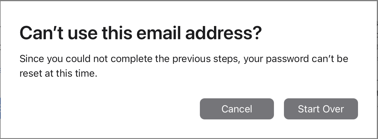 "Since you could not complete the previous steps, your password can't be reset at this time."