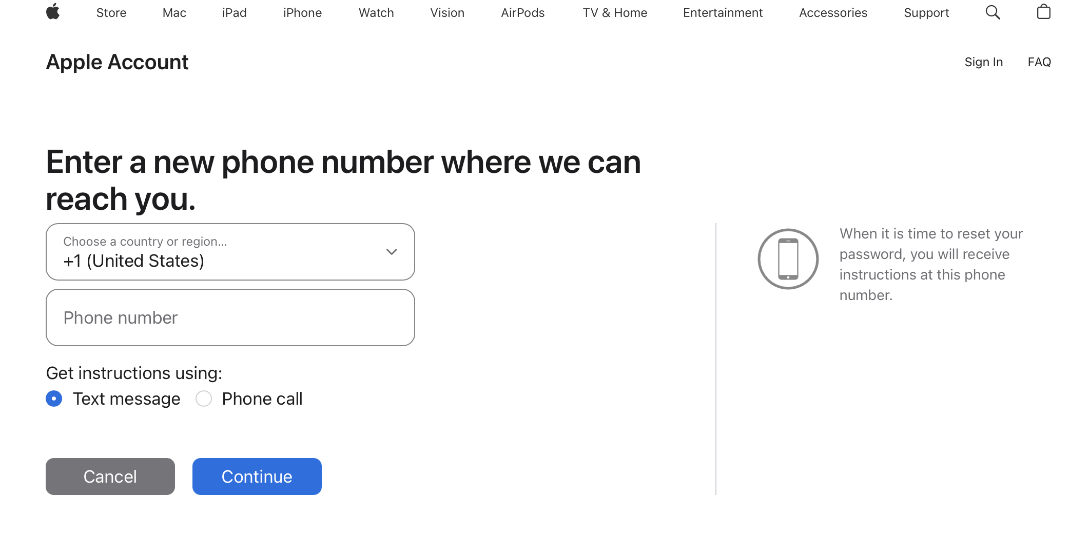 - When you correctly enter the code, you can choose a new password, verify the trusted number, and sign in normally.