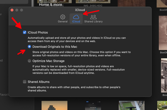 Then wait. Wait some more, and eventually this new Library will fill with full sized images from iCloud.