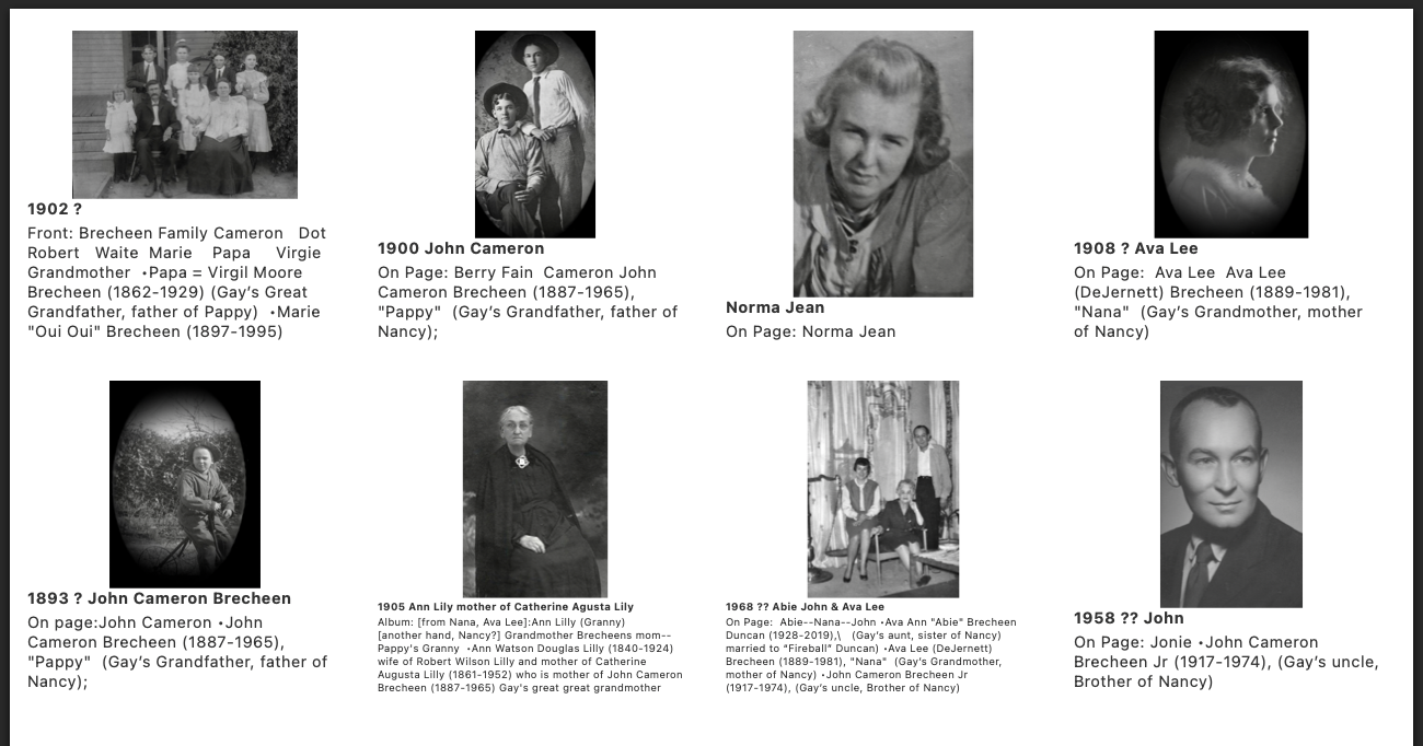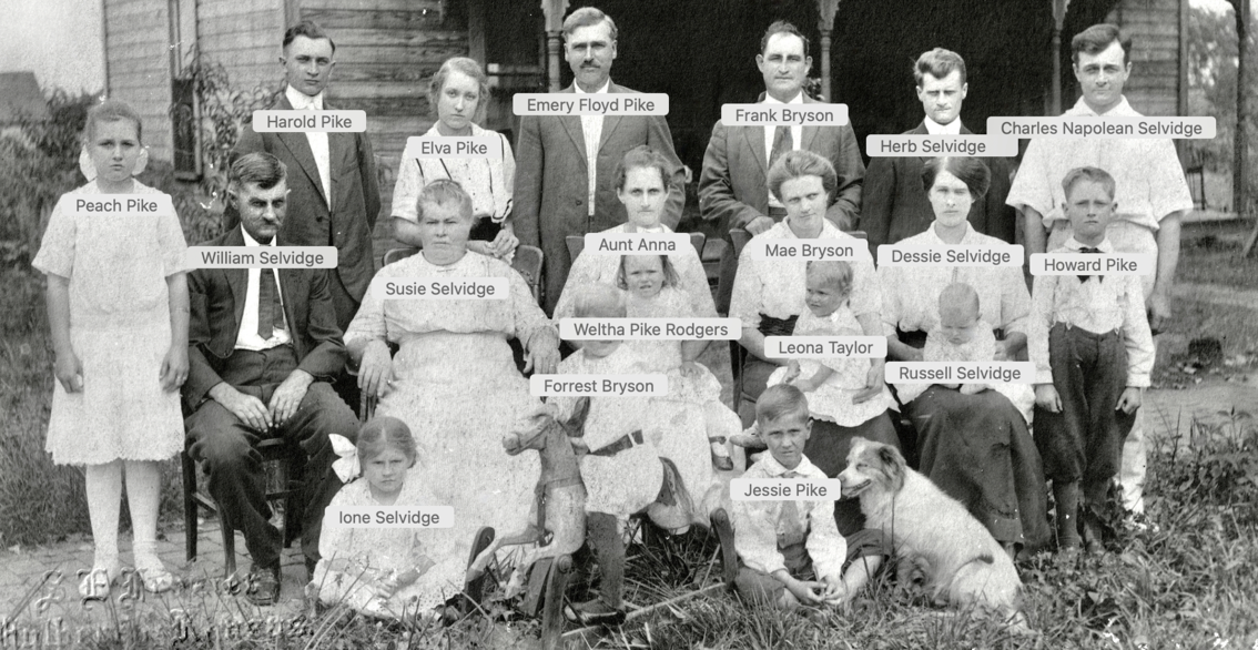 Just a list of names isn't good enough--I know because that's what's on the backs of pictures that I had to use to identify these folks. For some old pictures like this, I made a screenshot to preserve the names with the faces without depending on Face recognition in the future. And, except for the babies like my mother, it works as a good reference when I find other pictures.