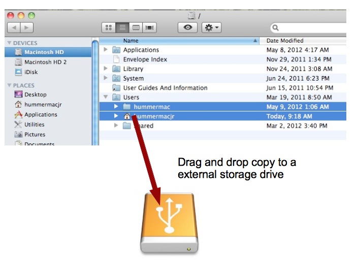 Once the copy is completed, drag the external hard disk icon to the Trash can to unmount and then physically disconnect the drive.