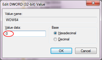 (10) Click OK. The WOW64 REG_DWORD value should now be 0x00000000 (0), as per the following screenshot: