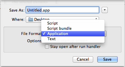 Hold the Alt/Option key while selecting File in the AppleScript menubar. Select Save As. On that prompt, select Application for File Format: