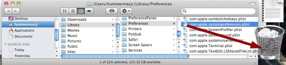 Deleting the System Preference or other .plist file