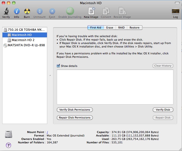 Since OS X 10.5 is no longer being supported, I advise 10.5 user to consider upgrading your Intel processor Mac to 10.6 via the white Snow Leopard retail disks during this repair process. If you upgrade and its slow/problematic or you need to erase and install to fix a issue, see below for the link. Do not use the 10.5 Disk Utility other than for completely erasing a 10.5/10.6 machine even if it will hold c or option/alt key to boot from it I doubt it, the firmware may have been changed in 10.6 sometime to discourage booting.