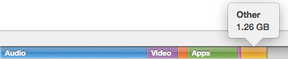 When you connect your iPad, iPod Touch, or iPhone to your computer and open iTunes, you will find a graph of the space usage that may look like this: