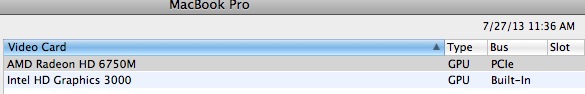 Newer Mac's with Intel processors have Intel HD 3000, 4000, or 5000 integrated with the processor graphics and are always well behind the current dedicated graphics from ATI or Nvidia.