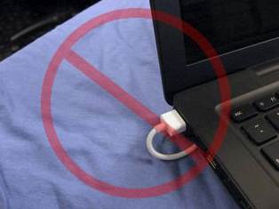 When your are done charging your Macbook, do not, especially at a sharp angle, just yank out the neodymium magnetic connector on your magsafe connection to your notebook, doing so is both tough on the cord, and puts excess stress on its neck where it enters the T-connector block of the connector head. Grab the T-connector head itself and gently tilt it up or down a bit and then out, or directly out.