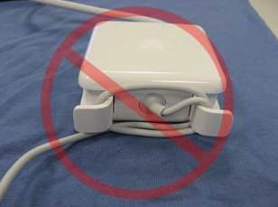 Do not make any hard bends or folds in your charging cable, or wind it tightly, always make either circles or loose loops when winding your cord up for storage. Also do not, as many people have seen, unroll your charger block from the magsafe end by letting the charger drop and unroll itself like a yo-yo, this is both hard on the charger and its connection points at both ends.