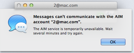 OS X: Using me.com or mac.com IDs with AIM in iChat requires OS X v10.7.2 or later